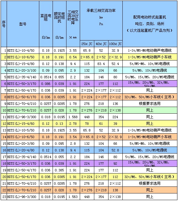 選用HXTS、HXTL(DHG)系列導(dǎo)軌,長(zhǎng)度在100米內(nèi)可不進(jìn)行電壓校核驗(yàn)算。大于100米時(shí)必須電壓校核。