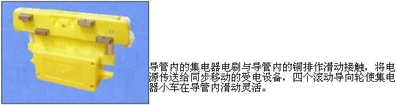 HXTS、HXTL(DHG)的導(dǎo)管內(nèi)有裝配緊湊、移動(dòng)靈活的集電器小車(chē),在移動(dòng)受電設(shè)備的拖動(dòng)下,同步移動(dòng)。同時(shí)通過(guò)在集電器上配置的多極電刷在導(dǎo)軌上滑動(dòng)接觸,將導(dǎo)軌上電源可靠地輸給移動(dòng)受電設(shè)備。