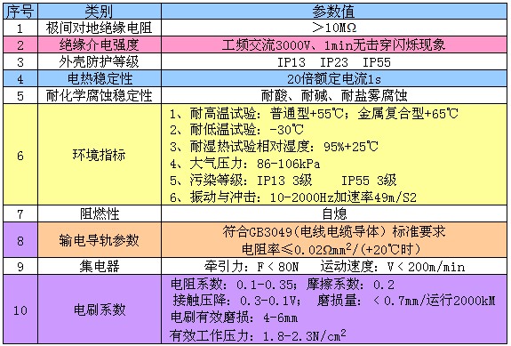 2、輸電銅排母線電流密度高、阻抗低、線路損失小。電刷具有良好的柔性和自潤(rùn)滑性,集電器移動(dòng)靈活、定向性好、接觸性好,有效地控制了接觸電弧和串弧現(xiàn)象。